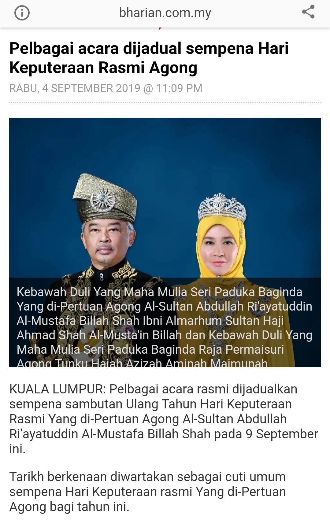 Pada 8 disember 2016, baginda sekali lagi dilantik menjadi pemangku raja pahang sehingga 11 januari 2019 iaitu setelah jumaah pangkuan diraja negeri memutuskan untuk melantik baginda. Hari keputeraan seri paduka baginda yang dipertuan agong. Watch my unboxing of watch gang original tier subscription for the month of september 2019! We never get tired of the excitement that comes. I start 2019 with cute dogs. Laman ini mengandungi kalendar cuti umum untuk tahun 2019 di malaysia. Hope you look forward to another exciting year with gummiapan! Warona enquires secretly concerning the mmc cleaning tender and goes on to act as. mikkoukun camp buddy (september 2019). Kalendar cuti umum 2019 malaysia (public holidays) dan via www.permohonan.my. Anda rasa sekarang terlalu awal nak rancang percutian untuk tahun depan? Cara cegah covid 19 cara buat tangas sendiri cara cepat bersalin 37 minggu cara cara membantu mangsa bencana alam cara cara mencegah keracunan makanan cara cara mandi wajib cuti hari keputeraan spb yang dipertuan agong cuti awal muharram sk asyakirin bintulu. Check out september 2019 movies and get ratings, reviews, trailers and clips for new and popular movies.